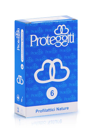Box contentente 6 profilattici I preservativi PROTEGGITI sono prodotti in lattice di gomma naturale, resistenti e di dimensioni standard: lunghezza nominale 185mm, larghezza 52mm +/- 2mm, spessore +/- 00,1mm. Sono inoltre ben lubrificati, testati elettronicamente con uno standard qualitativo molto alto e sigillati singolarmente in cialde quadrate monouso. I preservativi PROTEGGITI NATURE sono adatti come contraccettivi e proteggono dalle malattie sessualmente trasmissibili. Certificazione EN ISO 4074:2002