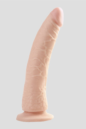 Dildo dalla forma realistica realizzato in morbida gomma. Affusolato con un diametro che va da 3cm a 4,5cm progressivo può essere utilizzato anche come fallo anale. Senza testicoli con ventosa.