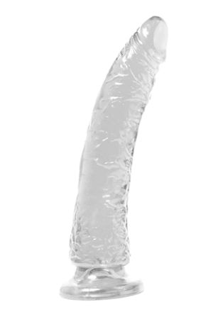Dildo dalla forma realistica realizzato in morbida gomma trasparente. Affusolato con un diametro che va da 3cm a 4,5cm progressivo può essere utilizzato anche come fallo anale. Senza testicoli con ventosa.