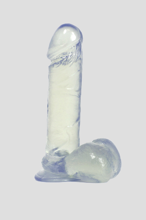 Intrigante dildo realizzato in mobido jelly trasparente. Dotato di testicoli e i ventosa permette penetrazioni al limite dell`impossibile. Applicatelo su una qualsiasi superficie liscia, resterà immobile grazie alla sua potente ventosa, e godetevi un lussurioso momento di piacere.
