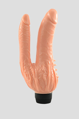 Il fallo doppio vibrante per penetrazioni simultanee vaginali ed anali, indicato per colei che ricerca intensi piaceri multipli. Dimensioni fallo vaginale: 18 cm di lunghezza e 3,5 cm di diametro. Dimensioni fallo anale: 16 cm di lunghezza e 2,5 cm di diametro.