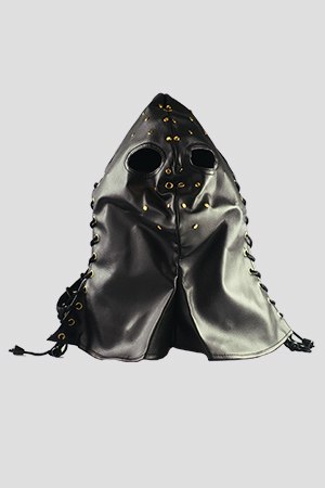 Per giochi bdsm estremi! Questo cappuccio ricorda le cappe indossate dai boia medievali nel corso della storia. Questa cappa di cuoio leggero può essere indossato da un master ed ispirerà timore a tutti gli slave! Il cappuccio si adatta facilmente ad ogni testa con lacci in nylon stile corsetto. Due ampi fori per gli occhi permettono di tenere sotto controllo lo schiavo sottomesso mentre due piccole fessure permettono di respirare.
