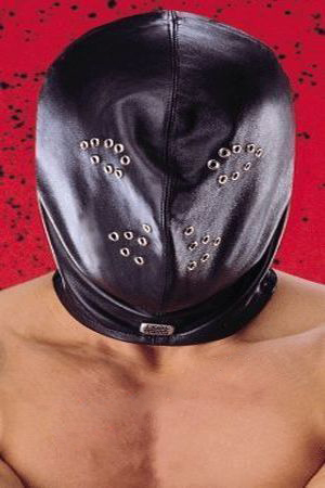 Cappuccio con aperture per bocca ed occhi, realizzate con piccoli forellini con borchia.