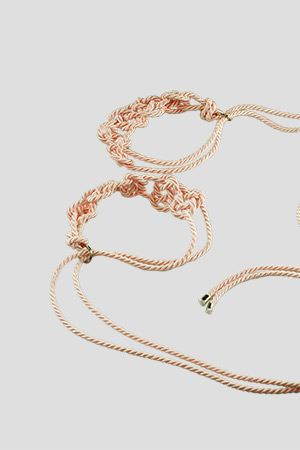 Particolari manette realizzate in corda di cotone intrecciata a 2 legnoli.
