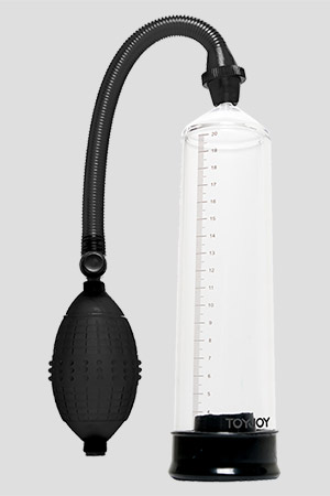 Sviluppatore a pompa con valvola di rilascio. Lo sviluppatore mediante la pompetta crea il sottovuoto facendo così affluire il sangue nelle cavità del pene aumentando l`elasticità e il volume. Il costante utilizzo rinforzerà anche le vostre erezioni rendendole più durature.