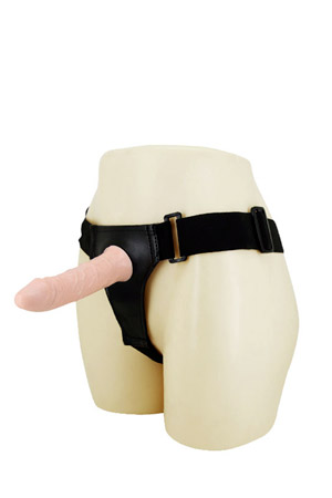 Strap on con cinghie regolabili, dotato di fallo realistico vibrante.