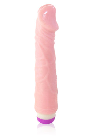 Vibratore realistico con glande scolpito e venature lungo il corpo.