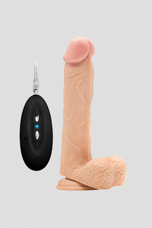 Questo Fallo Realistico da 23 cm rivoluzionerà la vostra stanza da letto, bagno o dovunque vogliate fare sesso, in un mondo di reale fantasia. Solido e in morbida gomma, consente una penetrazione flessibile e realistica, grazie alla presenza di venature e dei testicoli. Il RealRock permette una potente vibrazione con ben 10 modalità attivabili. Stabilità assicurata grazie alla solida ventosa alla base.