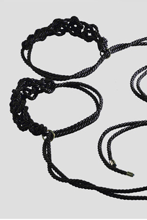 Particolari manette realizzate in corda di cotone intrecciata a 2 legnoli.