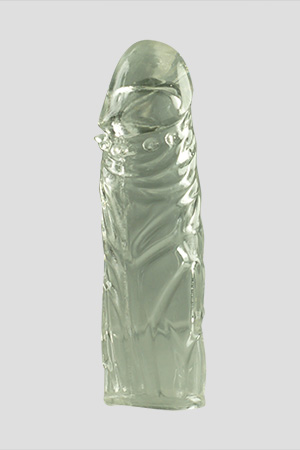 Guaina stimolante trasparente con forma fallica. Le venature e il glande be scolpito durante la penetrazione stimolano le pareti vaginali.