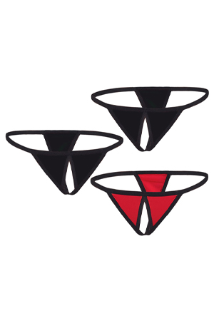 Per rilassanti momenti di piacere o per le giornate più HOT! La bella lingerie non solo ravviva le notti passionali, ma migliora anche la vita di tutti i giorni. E` quindi essenziale avere tre versioni di questo bellissimo string: due neri e uno rosso, tutti elasticizzati e con apertura sul cavallo.