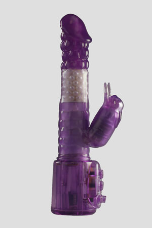 Un connubio tra tecnologia e tradizione è rappresentato in questo fallo dalle alte prestazioni. Jumping Rabbit è un vibratore di tipo rabbit con rotazione (sia oraria che antioraria), vibrazione (bassa o alta) e stimolazione della clitoride. Il tutto racchiuso in un articolo di forma fallica con glande ben scolpito e venature lungo il corpo come un fallo vero. Il coniglietto con le sue tenere orecchie stuzzica la clitoride mentre le sfere perlate ruotando stimolando le pareti interne della vagina. Trasparente con sfumature viola, Jumping Rabbit è garanzia di godimento assoluto.