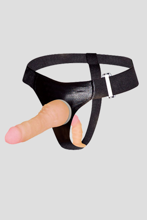 Comodo strap-on pensato appositamente per l`anatomia femminile: oltre al fallo esterno, ha anche un fallo, più piccolo, interno, che porterà piacere anche a chi lo indossa. Entrambi i falli sono realistici, con venature lungo tutta la superficie. Al tatto sono morbidi e vellutati... decisamente adatti agli amanti del realistico! La cinghia regolabile lo rende adattabile a tutte le taglie.