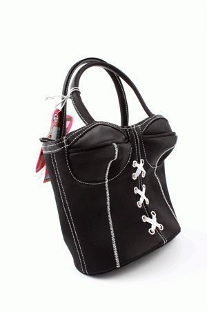 Sensuale borsetta a forma di corsetto. Nera con cuciture bianche contiene al suo interno una calda selezione di strumenti di piacere. Un accessorio veramente simpatico e intrigante.